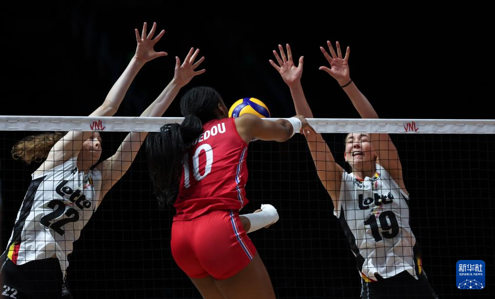 当日,在北京举行的2025年世界女排联赛(中国北京站)小组赛中,法国队3比1战胜比利时队。